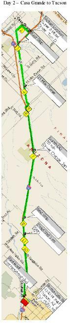 It was a straight shot down Alma School, since we were heading for lunch at the Safeway/McDonalds on Alma School at Chandler Heights Rd, where the PMBC Casa Grande ride starts. We arrived at 11:25 and spent about an hour there. Tim had the ice chest full of turkey sandwich makings, and the McDonalds was handy as well. On departure, Tom A took over driving as the team previewed the Casa Grande ride route.